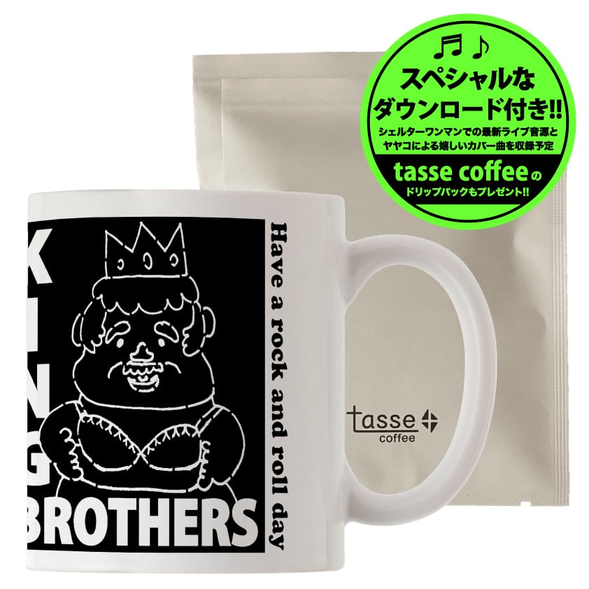 2026年1月11日(月)に下北沢シェルターにて開催された今年最初のワンマンライブ『KING BROTHERS ONEMAN LIVE 2026』にてO.A.にて登場してくれたthe yayakoの荒井氏によるユニークなイラストを使用したマグカップが登場しました、特典としてこの日のライブの模様と、the yayakoによるキングブラザーズの嬉しいカバー1曲を収めたダウンロード音源、そして #キングブラザーズで推し活 にて沢山の協力を頂いた東京都世田谷区代田にある自家焙煎の美味しい珈琲店「tasse」のコーヒーパック2個をお付けして2月下旬より発送いたします、是非ユニークなカップで「tasse」の美味しいコーヒーと一緒にこの日のライブ興奮をお楽しみ下さい。